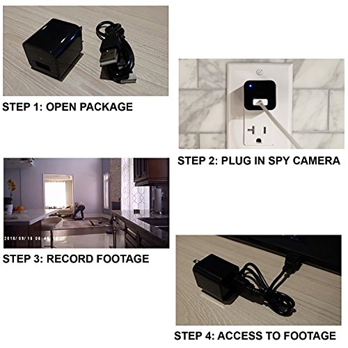 SIMPLY PLUG AND PHONE CHARGER: Plug hidden camera into any AC Outlet and it starts recording right away. Camera actually charges your phone too. It has a 5V 1000MAH power output.