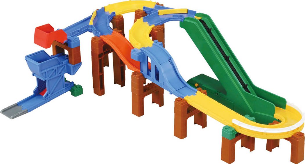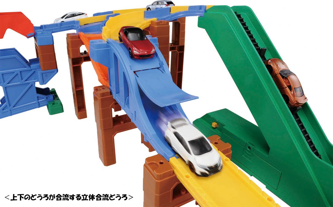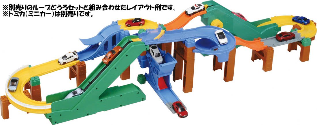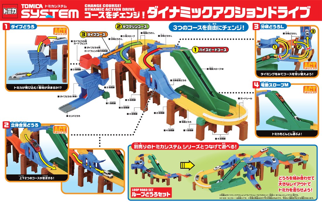 There are three ways of Tomica's course of travel: two automatic circulation courses that are tied to one with a three-dimensional confluence and a course that leads to a dive where Tomica jumps off the course.