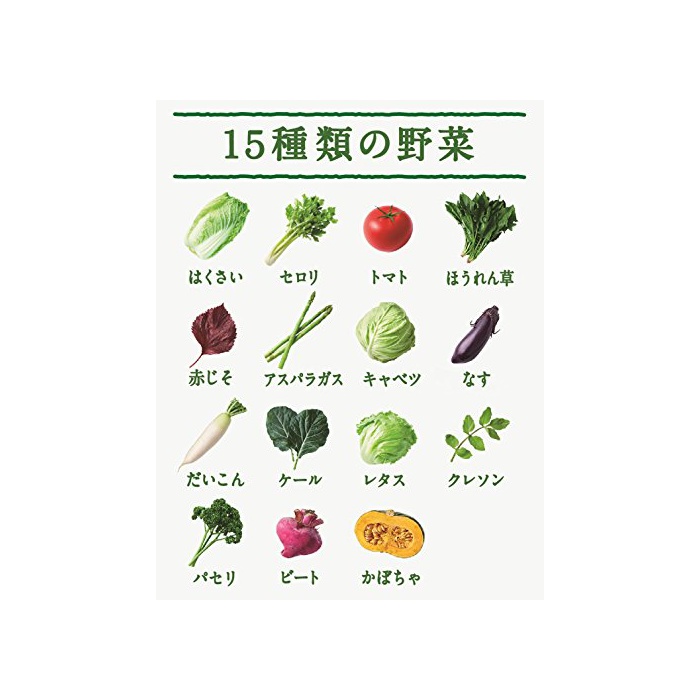 원재료:야채(서는 냄새가 나다,샐러리,토마토,시금치,빨강 하 #고, 아스파라거스,양배추,가지,무우,K《루》,양상추,《구레손》,파슬리,비트,호박)고, 레몬 과즙,향신료