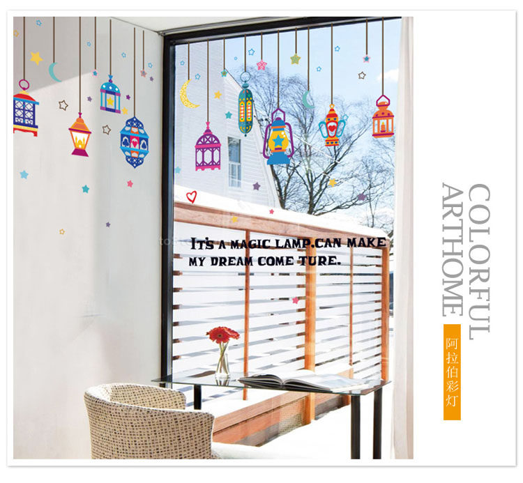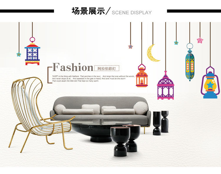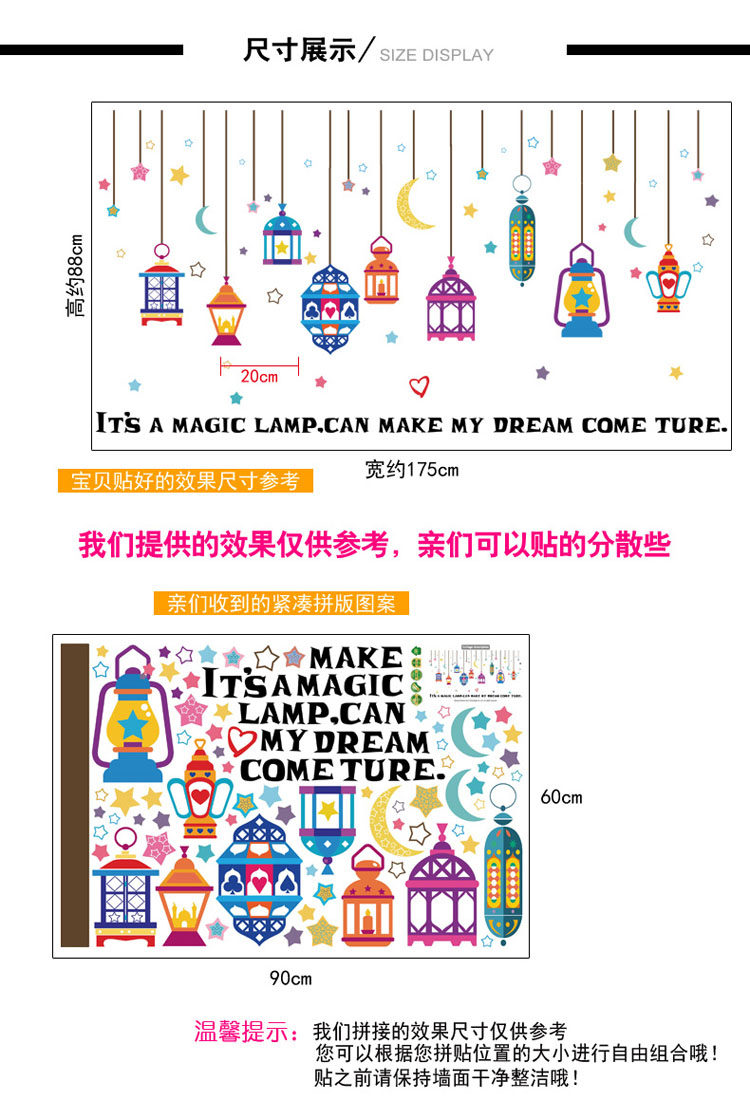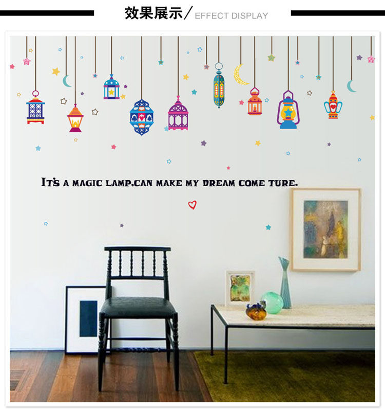 墙贴阿拉伯彩灯客厅顶线贴店铺橱窗吊灯装饰儿童房布置贴纸可移除