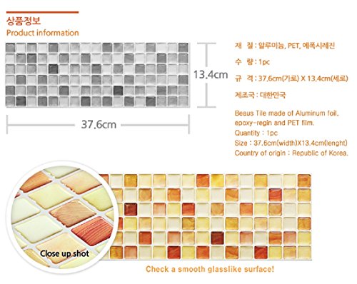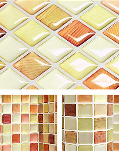 Beaustile Orange Mosaic 3D Wall Sticker Pack of 2 Home Decor Fire Retardant Backsplash Wallpaper Bathroom Kitchen DIY Plain Design