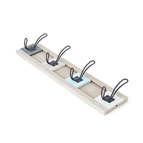 -. Feature : This wooden coat hook features 4 metal hooks / Multi colored block effect hooks move along the plaque / A modern way to display your garments / Crafted from Wood with metal hooks / Coat hooks measure 23.62x3. 35x5. 9 inches
