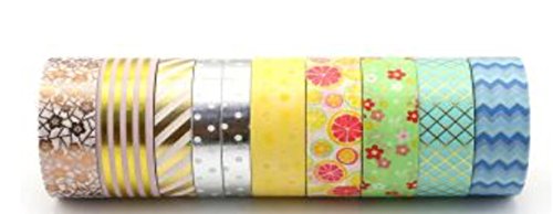 Premium Mix Masking Mix Washi And foil tape Set of 10 rolls Create unique Decorative craft And Variety of foils