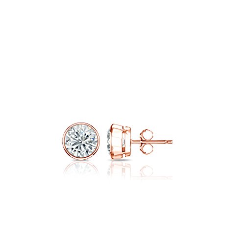 -. Title : 14k Rose Gold Round Diamond Stud Earrings Bezel (1/4 cttw, H-I, I2-I3)