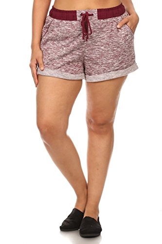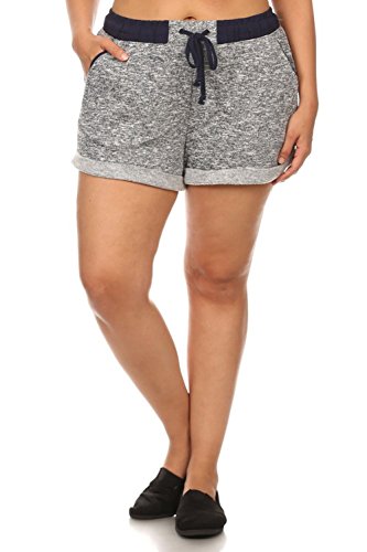 Product DescriptionJuniors plus sized, marled knit, heathered color shorts with elastic solid waistband, drawstrings, cuffed hems and side pockets.0