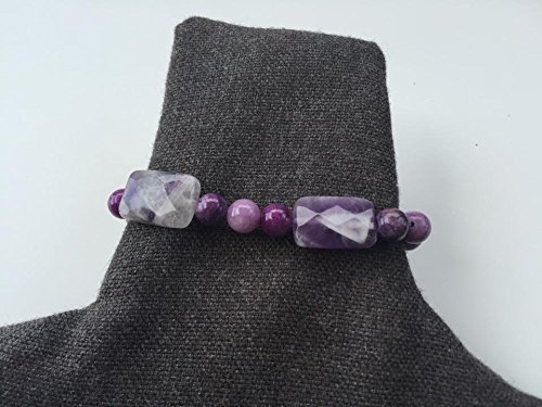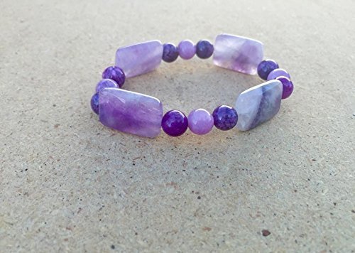 -. Title : 1 6" Amethyst and dyed quartz stretch bracelet