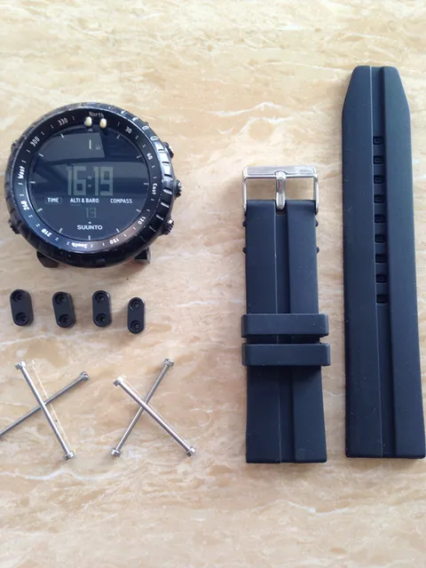 | [해외] DIY 사용할 양쪽 순토 코어 맞는 모든 블랙 실리콘 Zulu 전술 스트랩 시계 밴드 + 어댑터 + 버클 + 도구 |