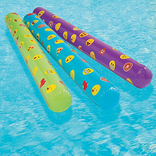 Product Description These emoji pool noodles are a great addition to your pool fun this summer! Includes 3 Emoji Pool Noodles. Measures approximately 4 feet long and 5 inches in diameter. 0