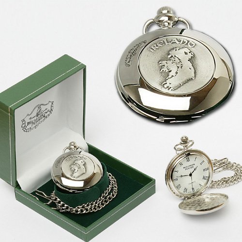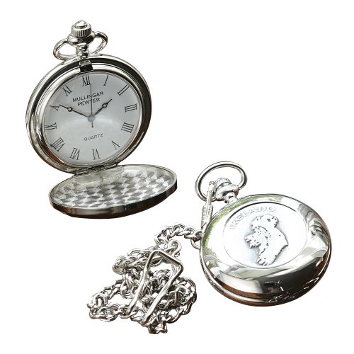 Studio : The Irish Store: Irish Gifts from Ireland Publisher : The Irish Store: Irish Gifts from Ireland Binding : Jewelry Product Description A beautiful vintage design hand-made pocket watch with engraved Ireland design. This classic pocket watch is Quartz and measures 2" in diameter with a 14" pocket watch chain length. Pewter never dates and is a superb display piece. Handcrafted in Ireland by a skilled craftsperson Mullingar Pewter. Mullingar Pewter, based in County Westmeath, Ireland, has always applied the highest standards of design and craftsmanship to produce pewter gifts of the highest quality, continuing a tradition dating back some 800 years. Each piece is still made in the traditional way in a crafts workshop by Irish men and women, specially trained in the old casting methods, meticulous assembly and delicate hand finishing. These skills take years to acquire and each piece of pewter bears the company touchmark which his a guarantee in itself. 0