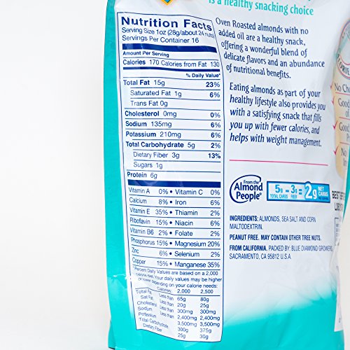 Blue Diamond, Almonds, Oven Roasted, Sea Salt, 14oz Bag (Pack of 3)