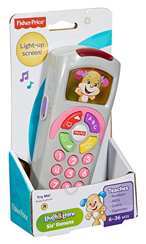 Loaded with buttons, songs & learning fun, this interactive Laugh & Learn toy remote control will really "click" with baby. For starters, it looks like a TV remote to make the pretend play more real. And when little ones press the buttons, the screen lights up and they're rewarded with songs & phrases that teach numbers, ABCs, opposites, colors and more. What a great way to give fine motor skills a push in the right direction!.Feature