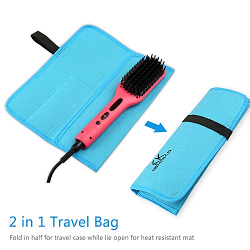 ISHAKO Flat iron Heat Resistant Case and Mat 2 in 1 Hair Straightener Travel Pouch for Any Straightener, Curling Iron Storage, Convenient Hair Styling Tool Storage (Full Size, Hot Pink)