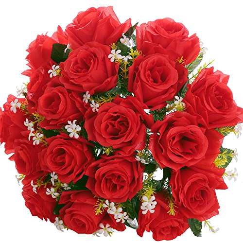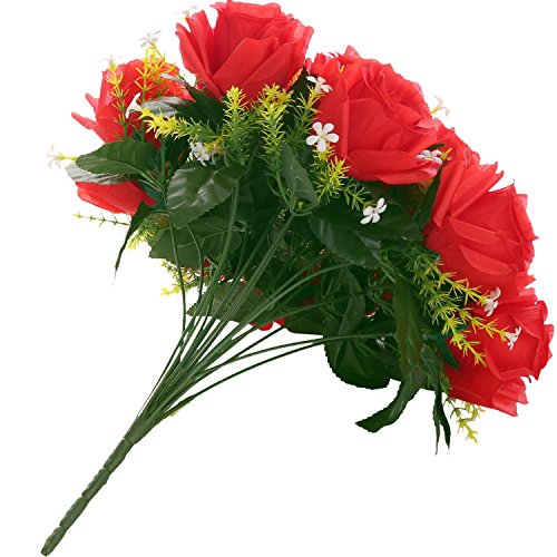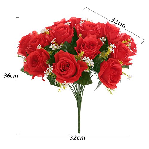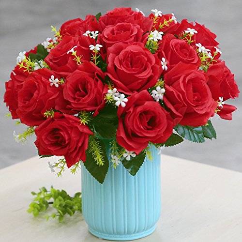 SOLEDI Artificial Flowers 18 Heads Solid Color Simulation Roses For Wedding Home Decor (Red)
