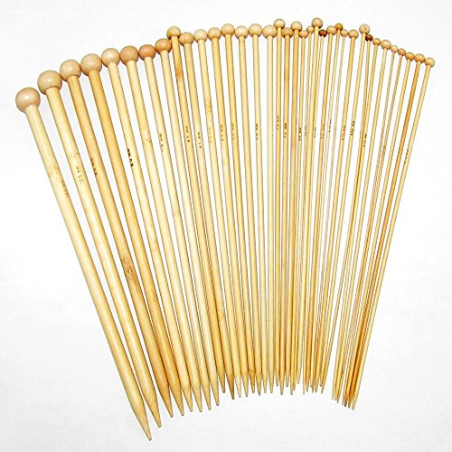 ZXUY 18 Sizes From 2.0mm to 10.0mm 36 PCS Carbonize Bamboo Single Pointed Knitting Needles Set