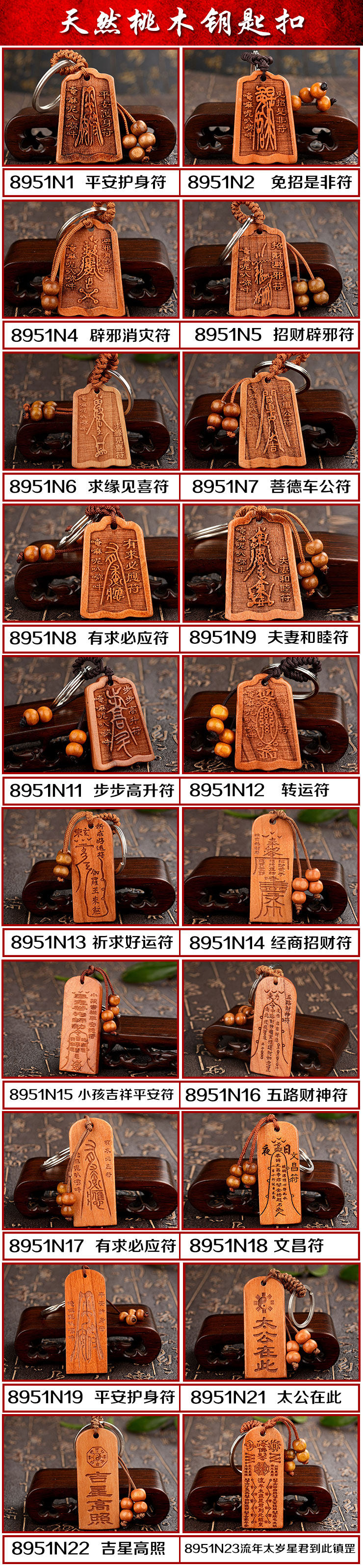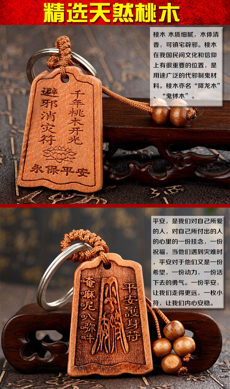 天然桃木钥匙扣木雕平安饰品桃木挂件金榜题名招财助运