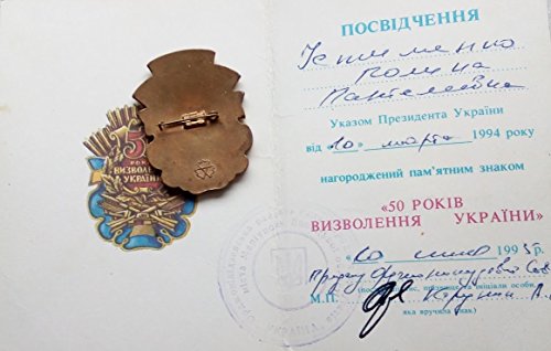 50th anniversary of Ukraine's liberation from Nazi invaders.WW II USSR Soviet Union Russian Ukrainian Military Meda Ustimenko womenl
