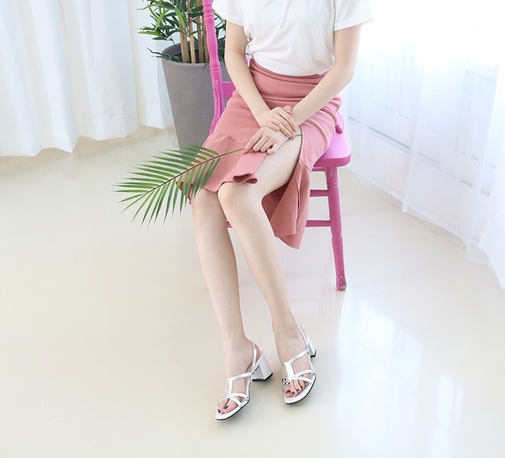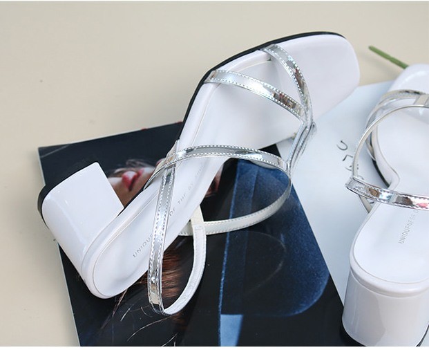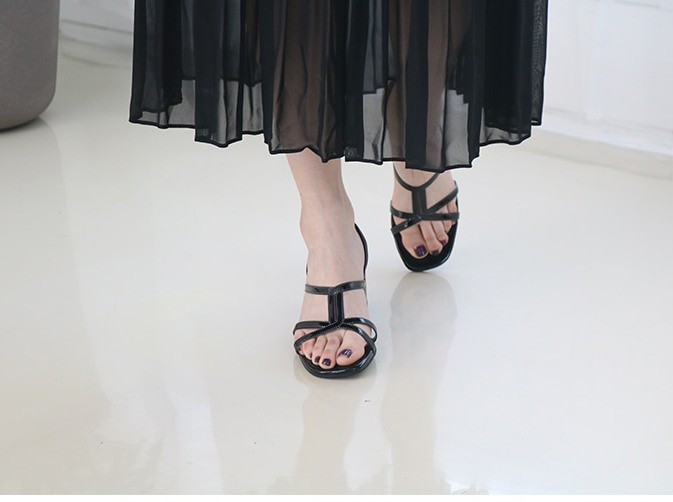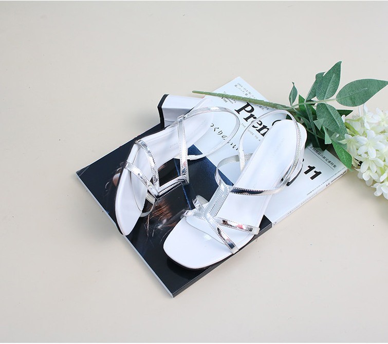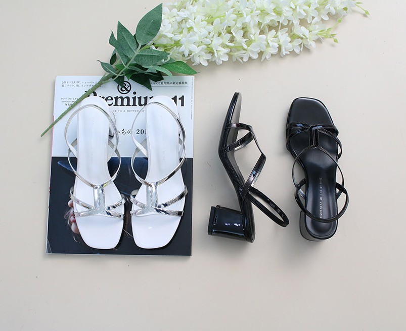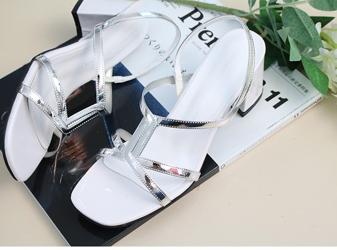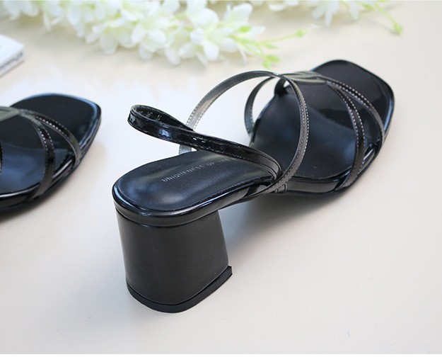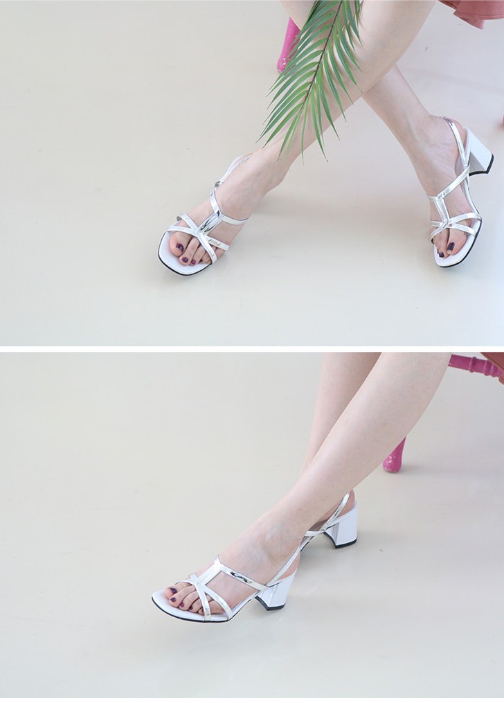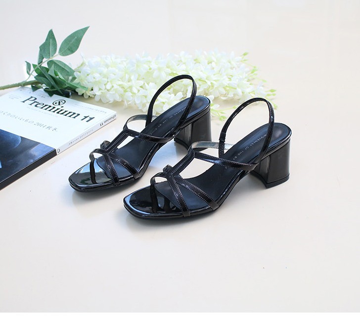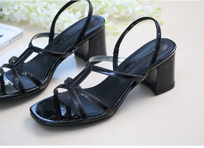 商品名:サンダル レディース 太ヒール チャンキーヒール エナメル調 スリングバック 2018 夏 ファッション 靴 婦人靴