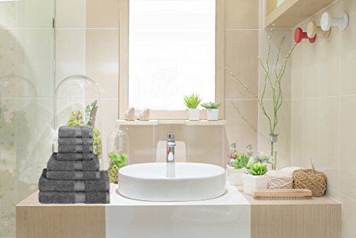 VALUE BUNDLE - 8-piece matching luxury towel set includes 2 Bath towels (27" x 54"), 2 Hand towels (16" x 28"), and 4 Washcloths (13" x 13") for your home or dorm room. This matching set comes in gray.