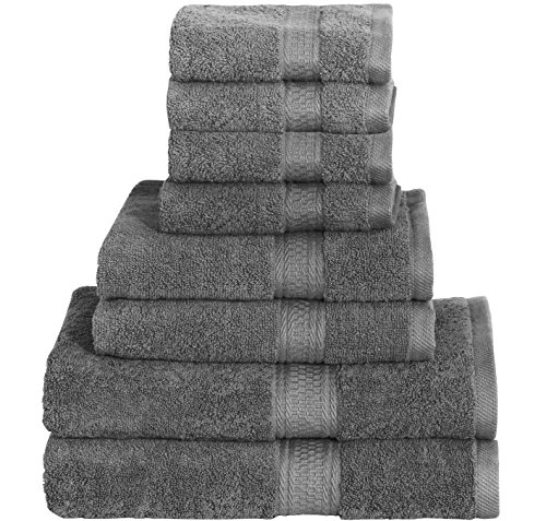 8 Piece Towel Set (Grey); 2 Bath Towels, 2 Hand Towels & 4 Washcloths Cotton Bath Towel Bath Sheet Hand Towel washcloth wash cloth By Utopia Towels
