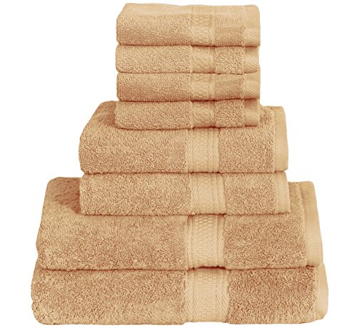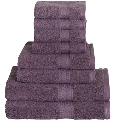 Get the most value for your money with a Top-Rated Utopia Bath Towel Set! Pamper yourself with the 100% Cotton 8-Piece Bath Towel Set made from soft and durable terry cloth. Each set comes with 2 Bath towels (24" x 54"), 2 Hand towels (16" x 28"), and 4 Washcloths (13" x 13") for your home or dorm room. Each 2-ply towel or washcloth provides optimal softness, absorbency, and versatility. Terry cloth fabric features pure ringspun Cotton for optimal softness and long-lasting quality. Professionally hemmed edges are carefully graded for quality control and product durability. Towels are very absorbent and will remain soft after multiple wash and dry cycles. Can be matched with additional Utopia washcloths, hand towels, or bath mats.