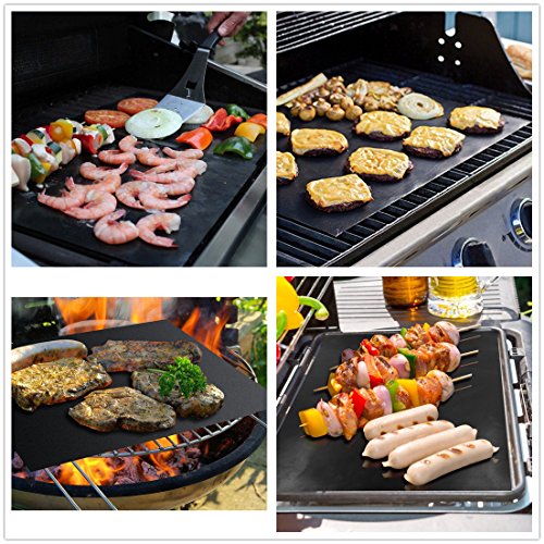 - EASY TO USE: bbq mats are outstanding, 100% non stick. Makes grilling anything easy and ends messy grill clean-up entirely! Grill meat, vegetables, fish, shrimp, pizza, even pancakes, bacon and eggs!