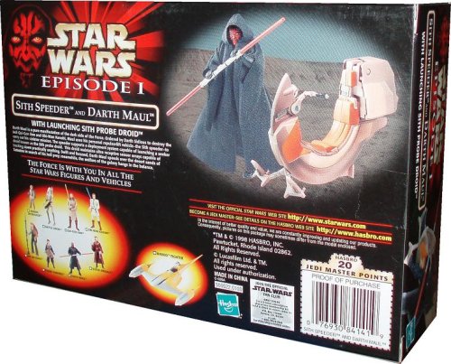 -. Feature : Includes: Sith Speeder with Launching Sith Probe Droid, 3.75 Inch scaled Darth Maul action figure, double bladed light saber, and cloak. / Sested for ages 4 and up.