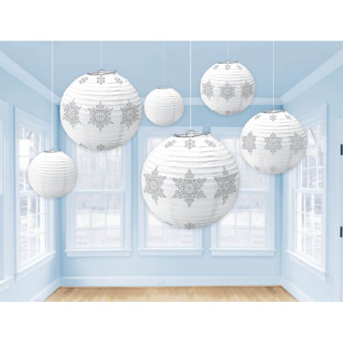 Amscan Round Paper Winter Icon Lanterns Value Pack, White/Silver