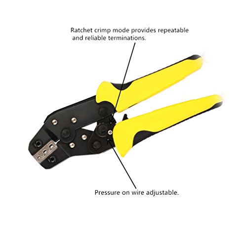 SELF-ADJUSTING: Automatic ratcheting wire and cable crimper effortlessly crimps wire ranging from 16 - 26 AWG (0.14-1.5mm² );Micro-adjustments to jaw tension can further be made by screwing.