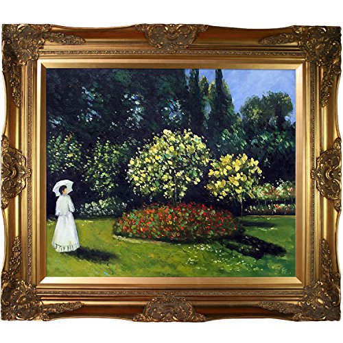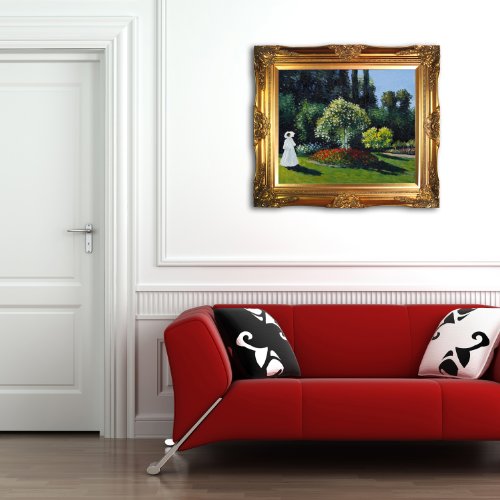 Hand painted oil reproduction of a famous monet painting, jeanne-marguerite lecadre (lady in a garden). Originally created in 1867. Today it has been carefully recreated detail-by-detail, color-by-color to near perfection. Why settle for a print when you can add sophistication to your rooms with a beautiful fine gallery reproduction oil painting. While monet successfully captured life's reality in many of his works, his aim was to analyze the ever-changing nature of color and light. Known as the classic impressionist, monet cannot help but inspire deep admiration for his talent in those who view his work. This work of art has the same emotions and beauty as the original. Why not grace your home with this reproduced masterpiece. It is sure to bring many admirers. Frame description, victorian gold frame gold finish.Feature