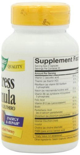 -. Binding : Health and Beauty -. Brand : Nature's Way -. Department : Natural Health -. EAN : 6935743513378 -. Feature : A special B-vitamin complex / Formulated to help ease the negative effects of stress / Fortified with vitamin C -. Label : Nature's Way -. LegalDisclaimer : Actual product packaging and materials may contain more and different information than what is shown on our website. We recommend that you do not rely solely on the information presented and that you always read labels, warnings, and directions before using or consuming a product. Please see our full disclaimer below. -. Manufacturer : Nature's Way -. Model : 40631 -. MPN : 40631 -. NumberOfItems : 1 -. PackageQuantity : 1 -. PartNumber : 40631 -. ProductGroup : Health and Beauty -. ProductTypeName : HEALTH_PERSONAL_CARE -. Publisher : Nature's Way -. ReleaseDate : 2010-03-05 -. Size : 100 capsules -. Studio : Nature's Way -. Title : Nature's Way B-Stress with Siberian Eleuthero, 100 Capsules -. UPC : 033674406311