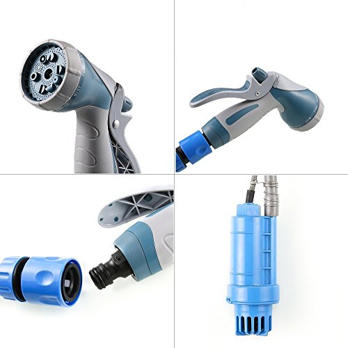-. Feature : Ideal for car use, charges from the car cigarette socket, cigarette lighter power supply, no external power sources required, convenient to use / Convenient to carry, you can use it in any place where water is available / Multiple usages, it can also be used for household cleaning and irrigation, featuring Angle, Mist, FLAT, SHOWER, 1/2VERT, CONE, SOAKER, RINSE, CENTER, VERTICAL 10 spray types / Friendly design of the water pressure gun grip will never make your hand tired / High-quality power cord, safe and reliable, metal filter, effectively block impurities and durable to use
