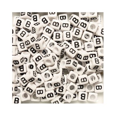 White Plastic Cube Alphabet Beads, Small, 6mm, Letter B, 100 pcs