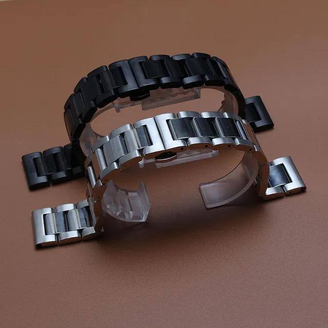 | [해외] 대한 samsung gear s3 프론티어 블랙 스테인레스 스틸 솔리드 링크 시계 줄 액세서리 22 미리메터 금속 시계 밴드 팔찌 닦지 |