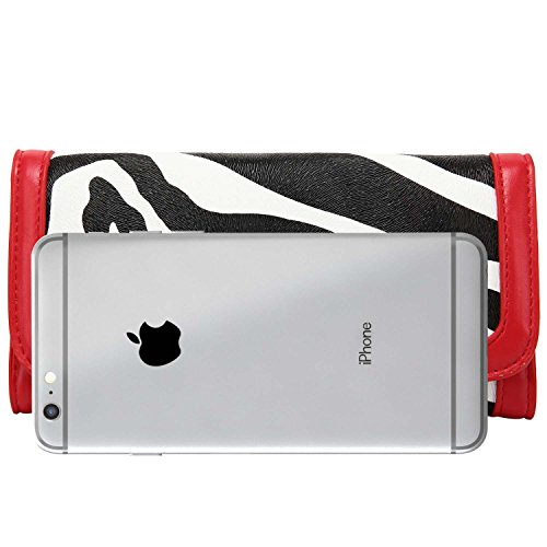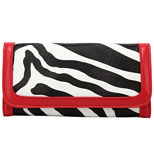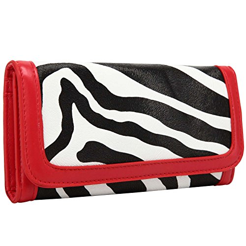 -. Binding : Apparel -. Brand : FASH Limited -. Color : Red -. Department : unisex-adult -. EAN : 0721493016810 -. Feature : Made using high quality man-made leather / It has a brown and off-white textured zebra print and a red colored trim / 5 Credit card slots or ID Holder, one cash compartment and one removable check book holder / Magnetic snap button closure and 1 Zippered Change Pocket / Approximate Dimensions: Exterior (When Closed) - 3.5" X 3.9" -. ProductGroup : Apparel -. ProductTypeName : ACCESSORY -. Size : One Size -. Title : FASH Zebra Print Clutch Wallet with Checkbook Holder and Red Trim -. UPC : 721493016810