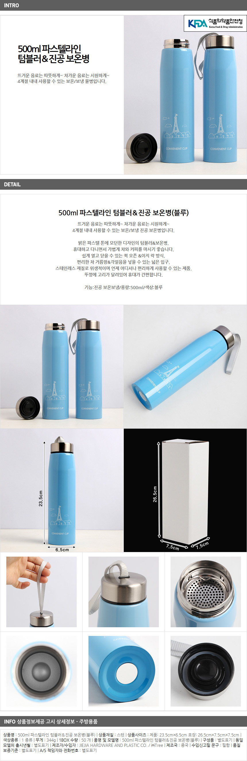 Cold Tumbler Pastel Line Tumbler & Vacuum Thermos Blue Stainless 500ml