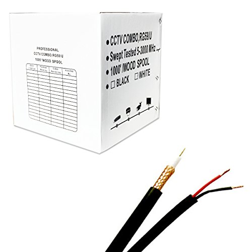 -. Title : Five Star Cable 1000 ft. Siamese RG59 Coaxial CCTV Combo Cable Black - 20AWG RG59 + 18/2 18AWG Power