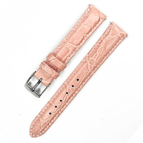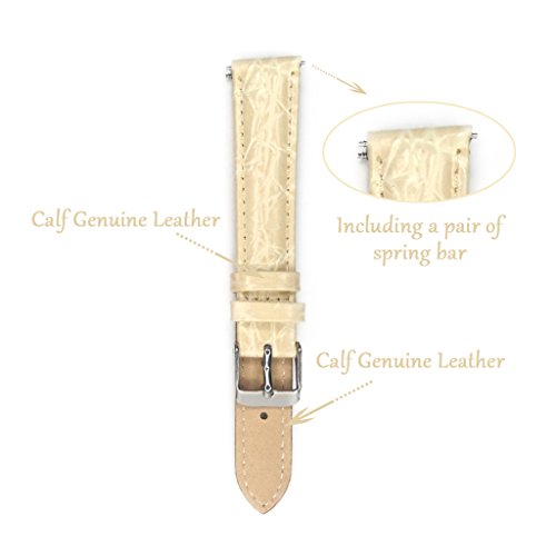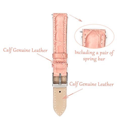 -. Feature : Women's Design -- Light color crocodile embossed pattern, Feminine and elegant. / Premium Craftsmanship -- Made of 3 layers include surface leather, thickening shape layer and bottom layer; Uniform stitching color with the band makes it feel more elegant. / Comfortable leather bottom -- Chosen the nubuck calfskin leather, More comfortable, More luxury. / Choice of Color & Width -- Pink, Beige or White; 16mm, 18mm, 20mm / Package -- one pc of band with a pair of sP.R.Ing bars in box