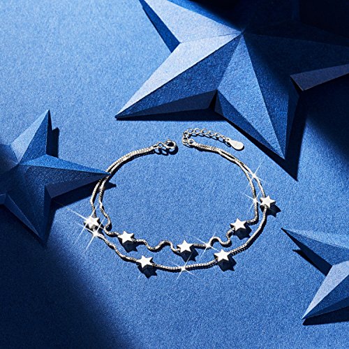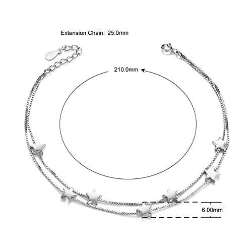 -. Feature : Material: Trendy 925 Sterling Silver Anklet with Double Layered Chains and Stars, Rose Gold. / Size:210mm in perimeter, Chain Extension: 25mm, the star about 6mm in diameter. / Good Luck Stars - Compatible with all casual occasions. / Hypoallergenic 925 sterling silver allows for comfortable wear, especially for those with sensitive skin. / FREE GIFT BOX WITH EVERY PURCHASE: The jewelry comes in a pretty gift box. Best Choice for any Gift Giving Occasion, Great Gift for Girlfriend, Wife, Daughter, Mom or Friends on Christmas, Birthday, Anniversary, Thanksgiving Day, Mother's Day etc.