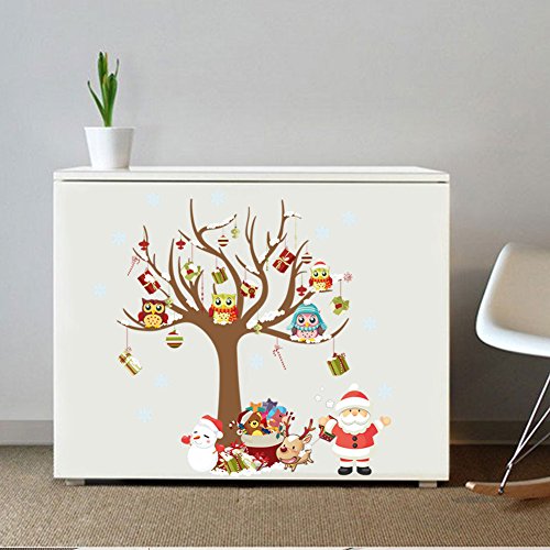 -. Title : ElecMotive Merry Christmas Santa Claus Owls Christmas Tree Gifts Wall Decals, Living Room Bedroom Shop Window Removable Wall Stickers Murals Removable DIY Home Decorations Art Decor (Christmas)