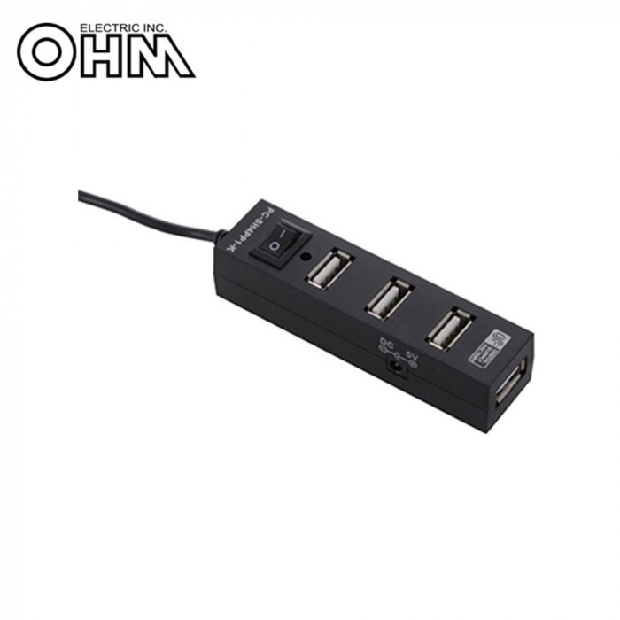 接続したUSB機器の電源をまとめてオン・オフできる一括スイッチを装備しています。 生産国:中国 ※サプライヤー直送品 ご注文後2~3営業日後の出荷となります【商品名】OHM スイッチ付き4ポートUSBハブ 黒 PC-SH4PP1-K