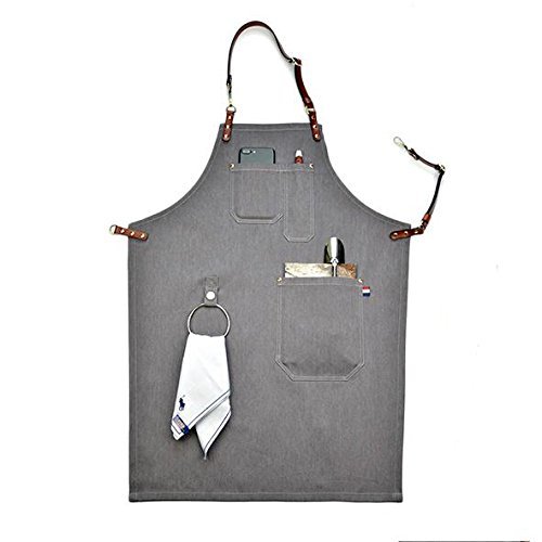 Heavy Duty Gray Waxed Canvas Work Apron With Pockets For Man (37.4by 26.77inch)