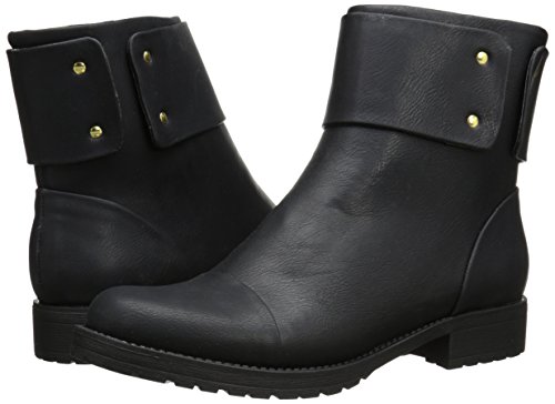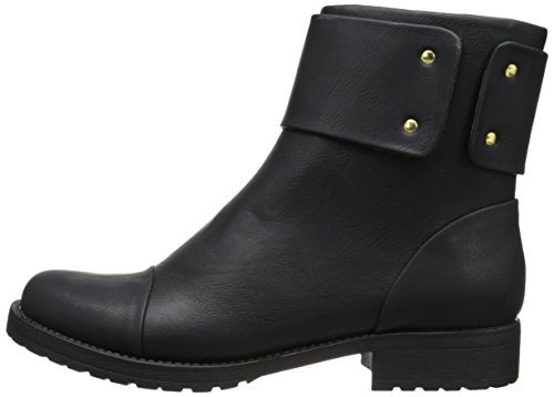 Cap-toe boot featuring wide cuff overlay secured with brassy studs