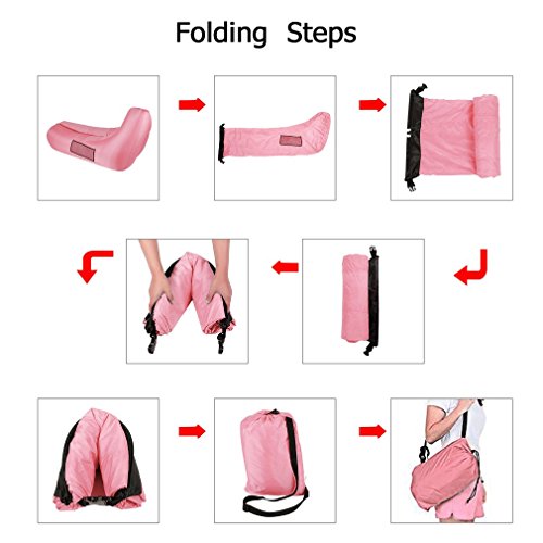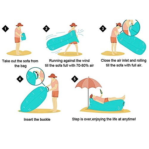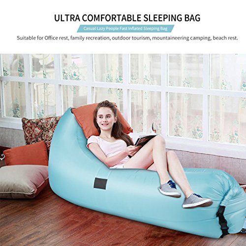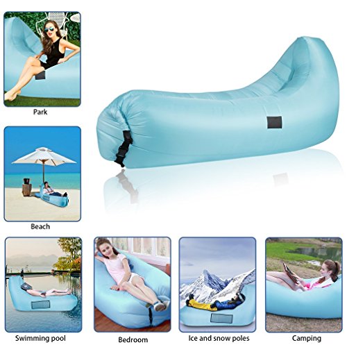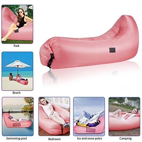 ? ?Perfect For: ?This inflatable air lounger is lightweight ,suitable for Beaches, Lakes, Pools, The Mountains, Hiking,Camping, swimming, outdoor BBQ, parks, backyard.Your Living Room Anywhere else you want to relax in comfort ?Take all your family and enjoy the time outdoors. Our Inflatable hammock is a very good company for you.You can use it as an inflatable bag, air hammock, air beach bags, cloud lounger, lazy bag, air filled lounger, air sofa. Also as a foam pool float, pool lounger or inflatable raft on water for an extremely laid-back pool experience. ?Enjoy it at home.Simply fill it with fan air, pump, cinch quickly after inflating. As a chair, it is much softer than normal one.As a sofa, it is a good place for kids' playing.As a bed, just sleep your different dreams.If you don't need it, just let the air go and fold the bag, it would not take your place at all.