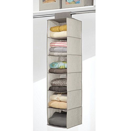 mDesign Chevron Fabric Hanging Closet 6-Shelf Sweater Organizer, 10-Shelf Shoe Organizer - Set of 2, Taupe/Natural