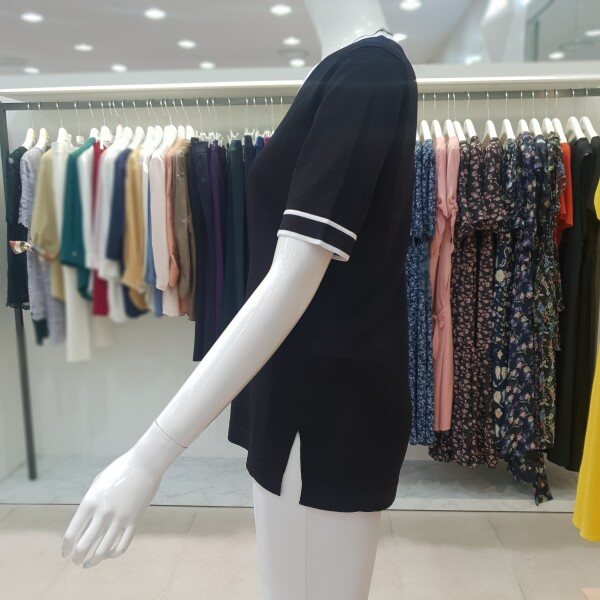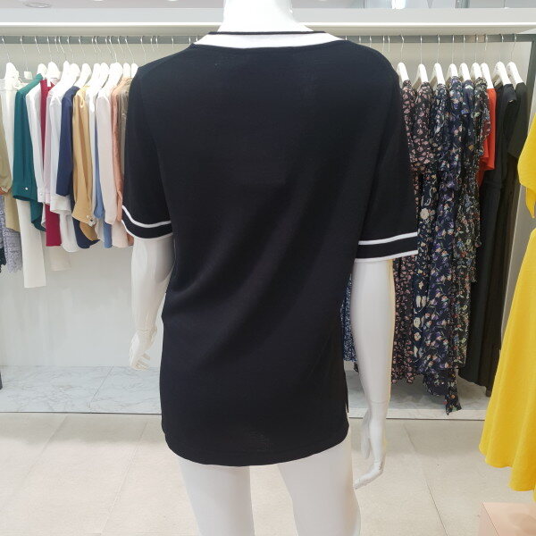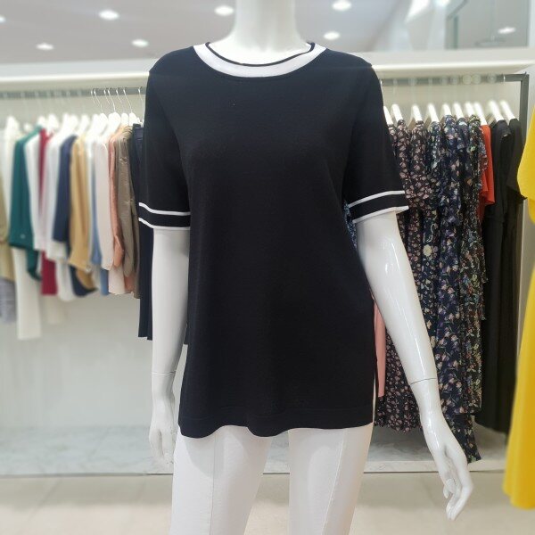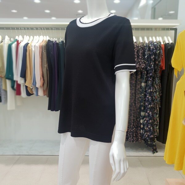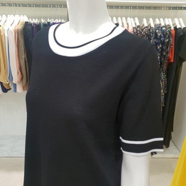 배색포인트가 들어간 니트 티셔츠 입니다