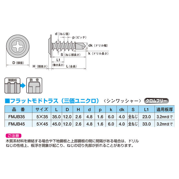 ●薄鋼板+鉄骨用ビス