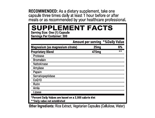 Serrapeptase, the primary systemic enzyme ingredient, is one of the strongest proteolytic enzymes known for its ability to promote healthy inflammatory response, help regulate the immune system, help remove excess plaque and fibrous tissues, and support the return of healthy blood flow and volume. Vitälzȳm also contains the additional fruit enzymes papain and bromelain, the digestive enzymes amylase and lipase, and the complementary phytonutrients rutin and amla extract.