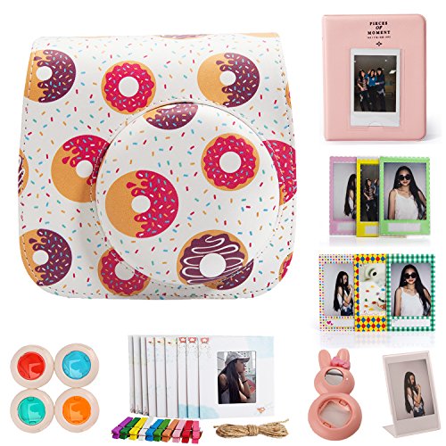 Woodmin Donut 8-in-1 Fuji Mini 8 Instax Accessories Bundle for Fuji Mini 8 8+ Mini 9 Instant(Mini 8 case/ Albums/ Frames/ Film Stickers/ Filters/Selfi-Lens)