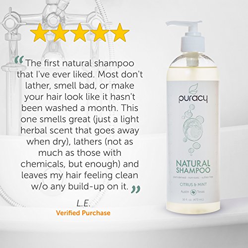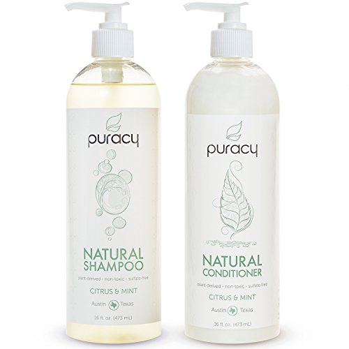Puracy Natural Shampoo & Natural Conditioner Set represents decades of natural product formulation combined with rigorous salon testing and the oversight from a team of doctors. With dozens of revisions and thousands of hours of R&D, the end result is a hair care combo which safely and effectively treats all types of hair. The balanced blend of luxurious cleansers, emollients, and essential oils are designed to thoroughly clean and moisturize, leaving hair feeling silky, smooth, free from static. The sulfate-free formulas work cohesively to care for both your hair and scalp. You will notice your fingers glide through your hair while washing, conditioning, and rinsing. Packed in this world-class blend of ingredients is squalene (olive oil-derived), which provides weightless moisture, eliminates static, and creates frictionless hair. Designed for men and women with normal, oily, dry, color-treated, bleached, highlighted, permed, curly, or other hair types. The balanced citrus and mint aromas brighten and energize your bathing experience. This product is 99.95% Natural, per Puracy's 'What Natural Means to Us' definition available on our website.Feature