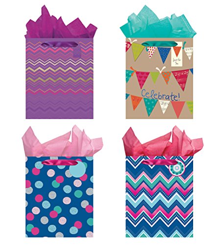 All Occasion Party Gift Bags - Set of 4 Large Gift Bags w/Tags & Tissue Paper